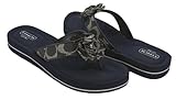 Rubber sole Signature denim straps with leather trim Signature denim flower detail Cushioned foam footbed Rubber sole patterned with Coach C's 1 inch heel