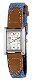 This affordable Medana timepiece is perfect for an everyday casual watch. Features include a blue denim strap with white contrast stitching, backed with faux leather and accented with glossy faux leather end pieces; matter silver-tone case and buckle; cream colored dial with Arabic numerals; precision Japanese quartz movement; stainless steel caseback; gift box; and Medana's lifetime limited warranty.>